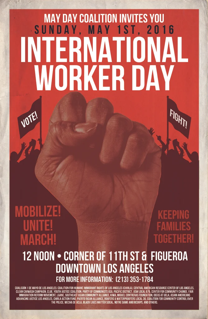 On Sunday, May 1st we will be marching the streets of Los Angeles for our families, jobs, and future. Please join us as we celebrate International Workers Day.